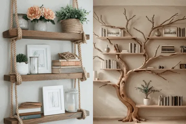 1. Floating Rope Shelves: Industrial Chic Meets Rustic Charm